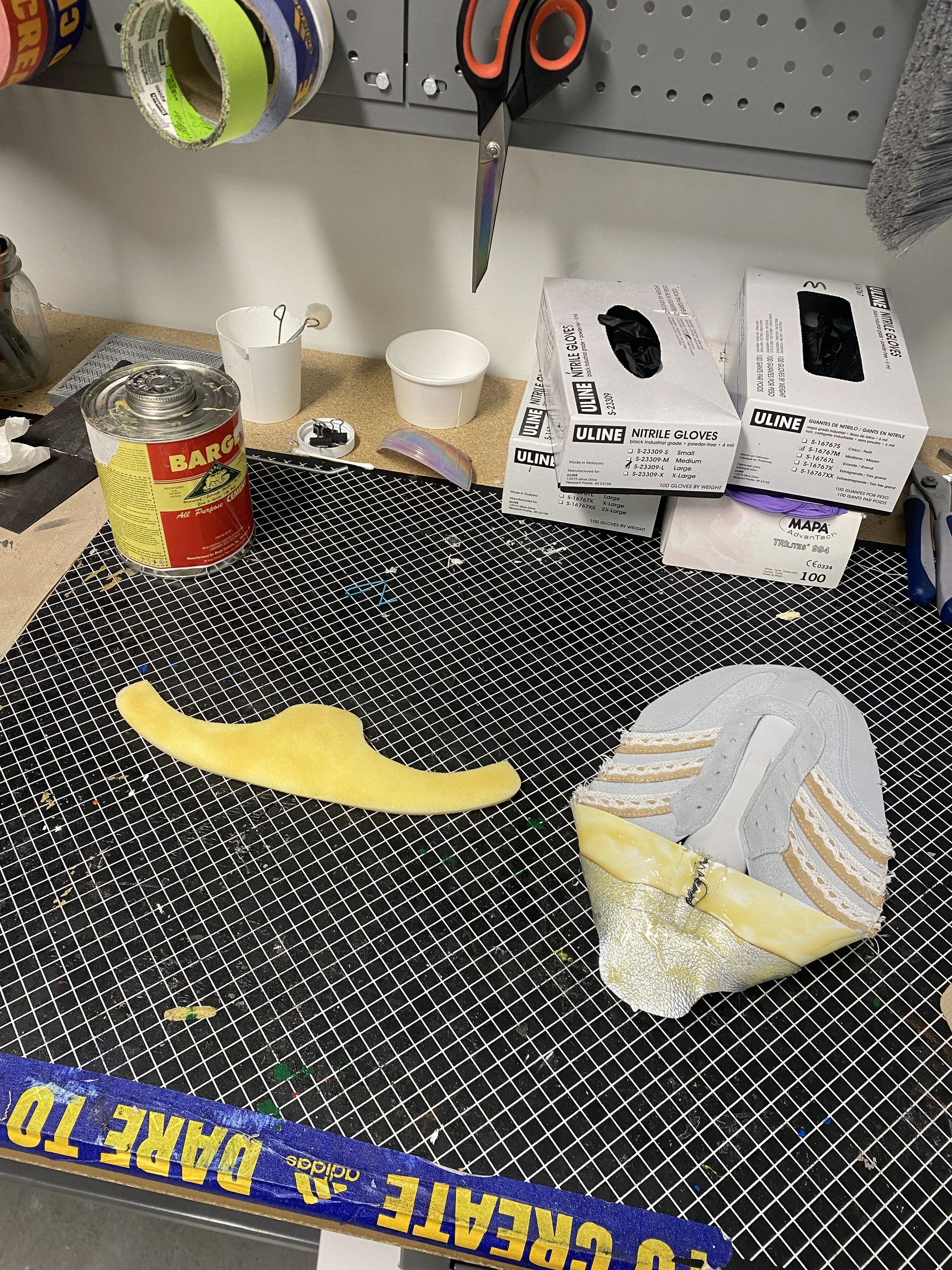 Assembling was the most daunting part. I went to the Sample Room to learn how to add the tooling. First they strobbled it so it was ready to be fit for tooling. We had to sand the tooling so the shoe glue would stick and hold. I also learned shoe glue smells gnarly.