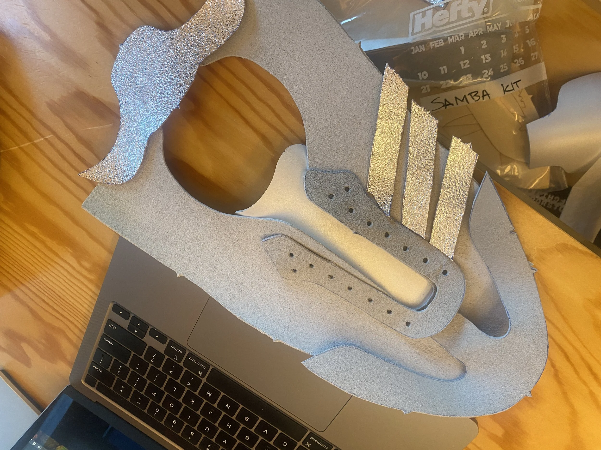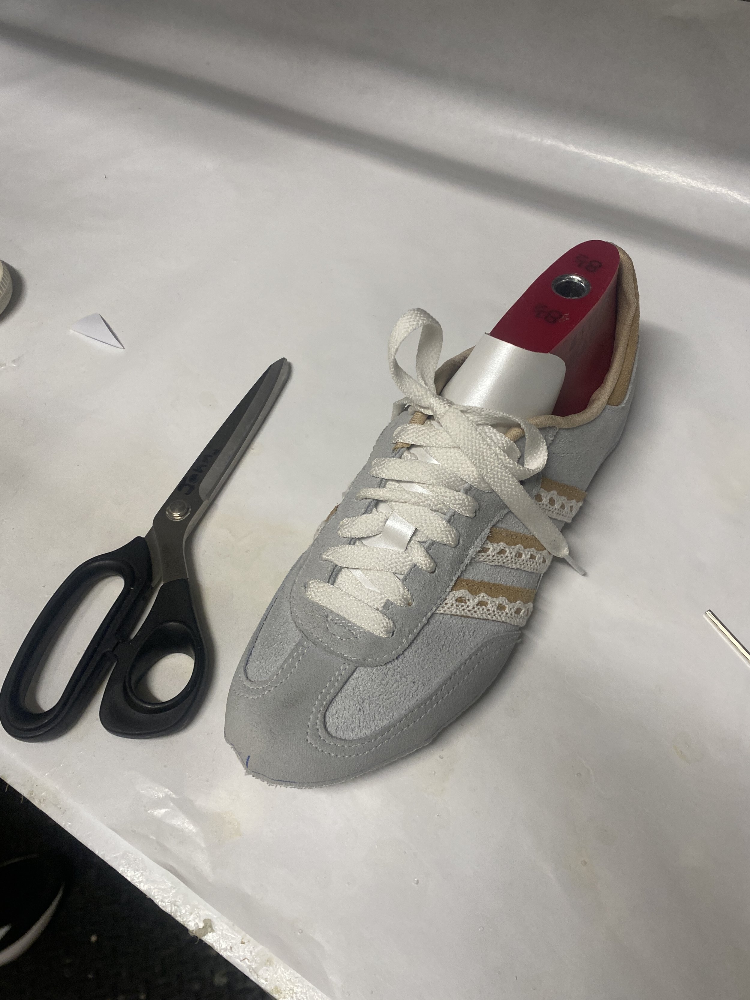 With an internship at Adidas in the summer of Sambas, I wanted to learn the process of constructing a shoe from start to end. Adidas offers a Samba making class from choosing the fabric, to sewing, and assembling. I loved the look of Wales Bonner Shoes so my inspiration came from the lace and stitching of those shoes with an all suede upper to emulate the Spezial material execution.